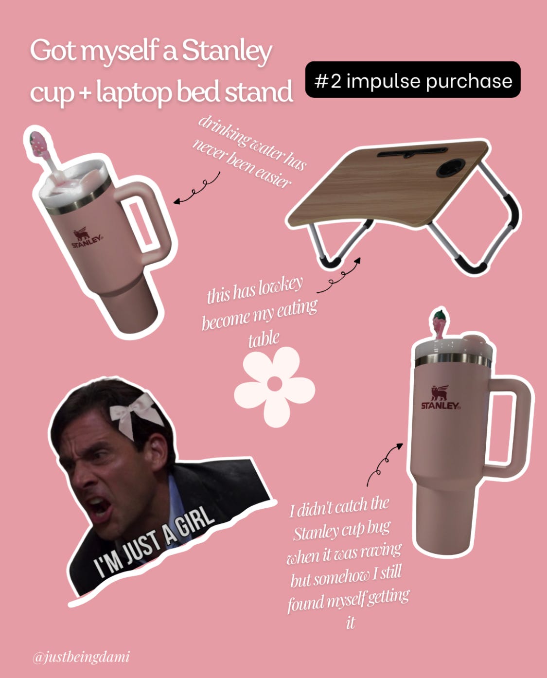 Purchase 2 is getting a laptop bed stand + a Stanley cup.
